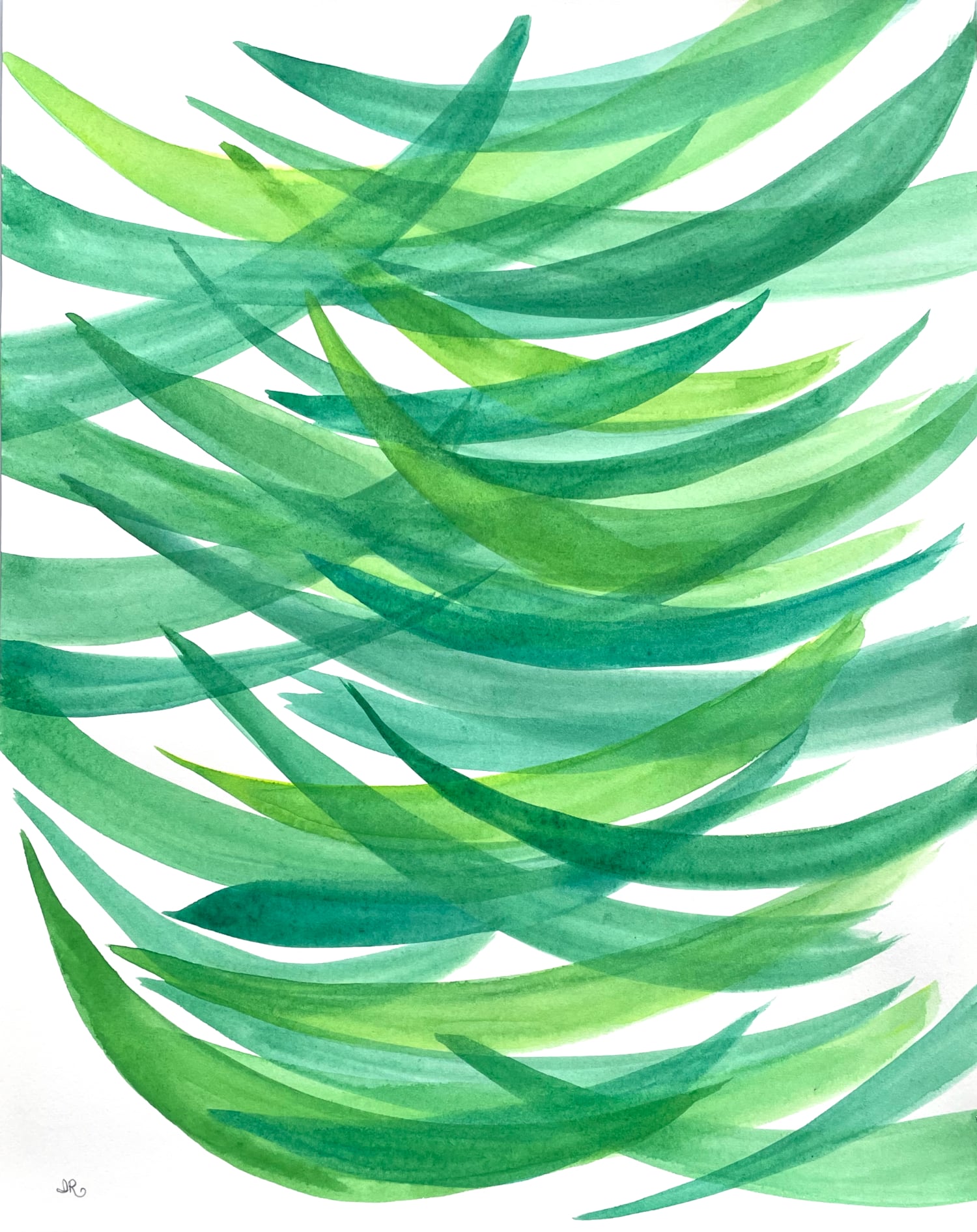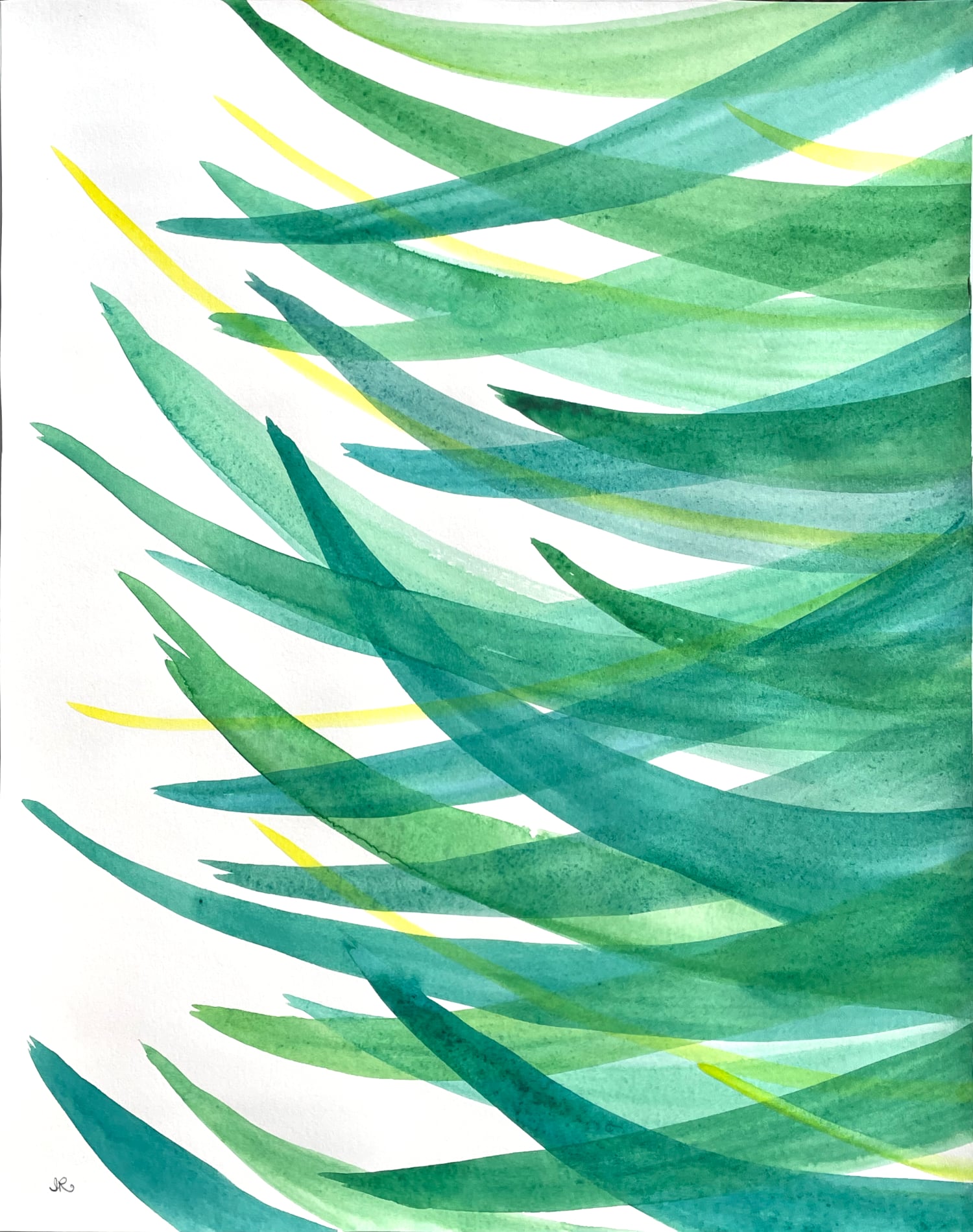 2025, Selections from “Coastal Elements”, watercolor on paper, and “Illustrations of Time”, acrylic on board.